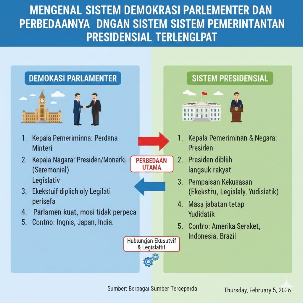 Dalam studi ilmu politik, tata kelola sebuah negara sangat bergantung pada sistem pemerintahan yang dianutnya. Sistem pemerintahan merupakan kerangka kerja yang mengatur bagaimana kekuasaan dibagi dan dijalankan antara lembaga eksekutif, legislatif, dan yudikatif. Dua model yang paling dominan di dunia saat ini adalah sistem demokrasi parlementer dan sistem pemerintahan presidensial. Memahami perbedaan mendasar antara keduanya bukan hanya sekadar menambah wawasan akademik, tetapi juga membantu kita memahami dinamika politik global serta bagaimana kebijakan publik dirumuskan di berbagai negara.
